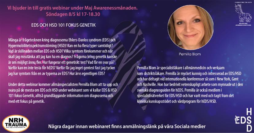 Maj är månaden då vi världen försöker öka medvetenheten och kunskapen kring HSD/EDS. Detta sker via olika individuella, lokala, nationella och internationella insatser. Det kallas internationellt för ”EDS & HSD Awareness month”.